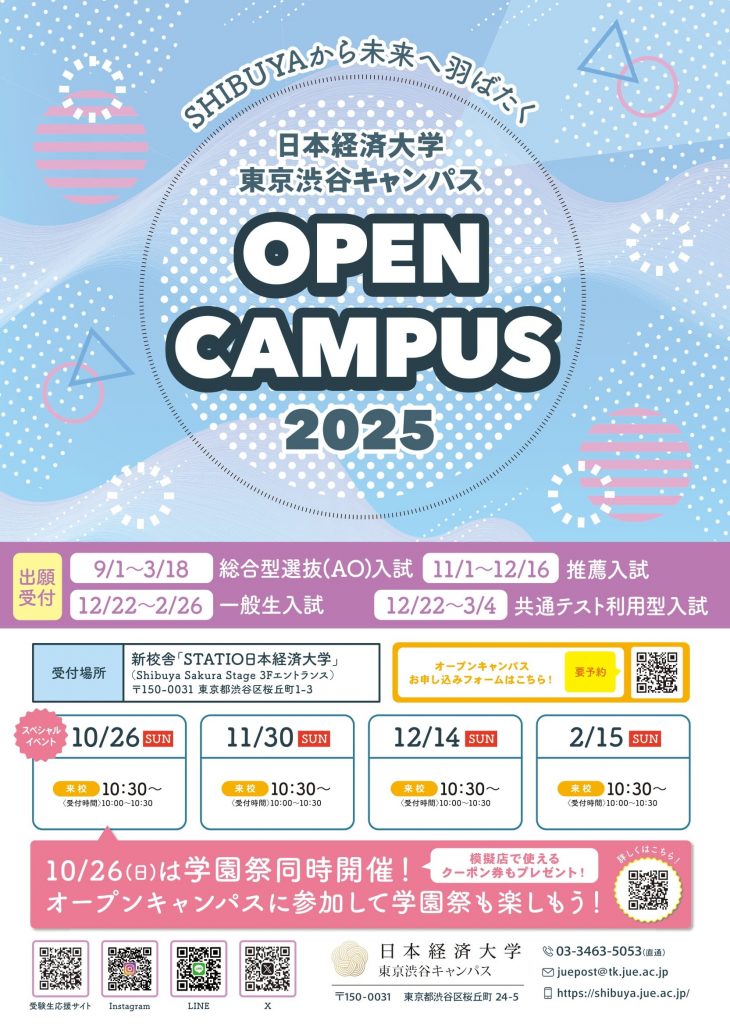 日本経済大学 東京渋谷キャンパスでは、11月-12月とオープンキャンパスを開催しています。